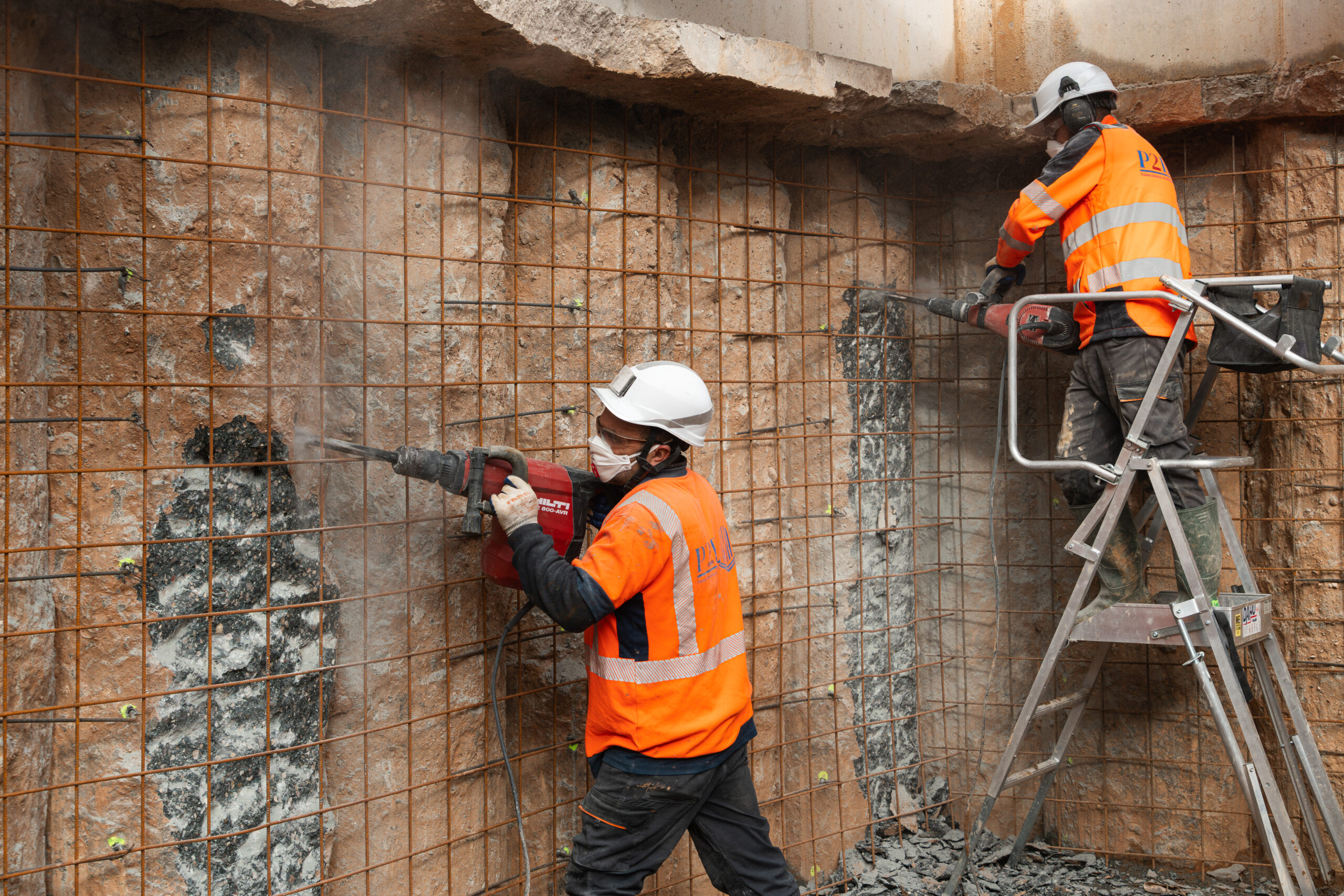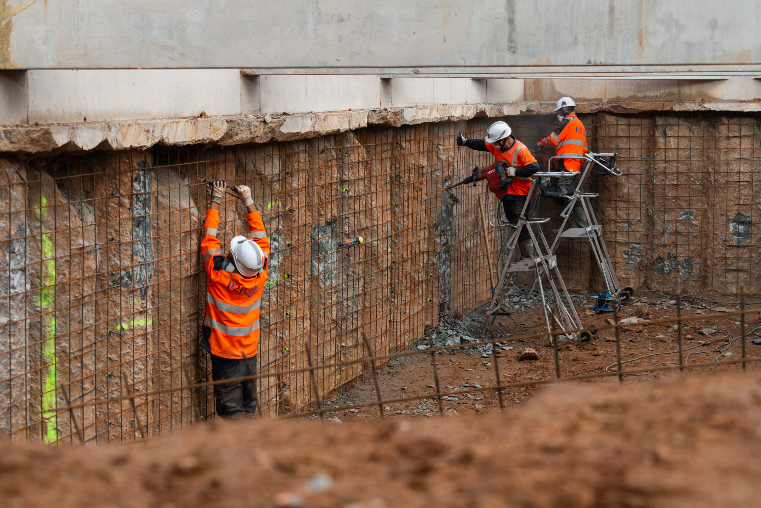 Maîtrise de la voie sèche : Utilisation du béton projeté pour épouser parfaitement la forme des pieux sécants.